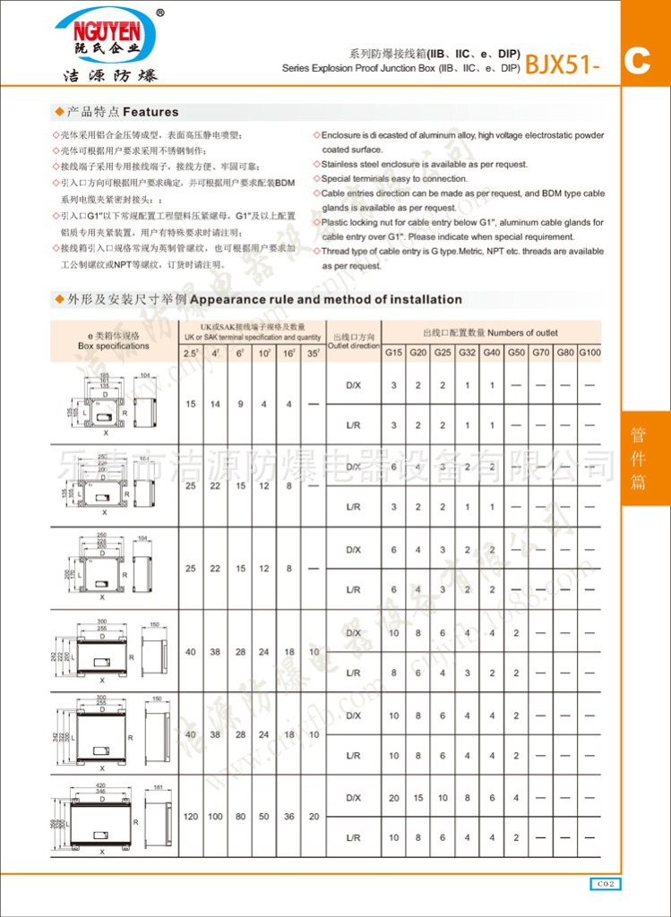 。公司先后研制了金属防爆系列、塑料防爆系列、高效节能系列有免维护防爆节能灯(低频无极灯)、LED节能防爆灯系列,完全采用无线连接方式、充分体现了防爆、低碳、环保、节能、安全、超长的使用寿命(光?~10万小时)及安装维护方便等要求,开发的大尺寸防爆箱造型新颖、外观大方、方便实用,已经成为新一代防爆电器、灯具领域的主导产品之一。公司生产的100多个系列1000多种?/font>品。可全方位满足石油化工、洗煤、煤化工、冶金、电力、医药、船舶、粮食、纺织、酿酒、印染、航天、军工、消防、隧道与基础廹/font>设等各个行业领域使用要求、br>洁源公司始终坚持以创新为企业的立身之本,矢志不渝地秉?ldquo;不断创新、持续改进、诚信为先、信誉为?rdquo;的核心价值观,并将之渖/font>透到产品研发与制造中去、为实现致力于在工业防爆电气领域创造高品质的产品与服务,成为行业具有竞争力品牌企业?ldquo;人类皃/font>生命财产安全提供保障的崇高使命奠定了坚实有力的基础、br>下面为本产品的技术资料与详细参数请您查阅