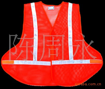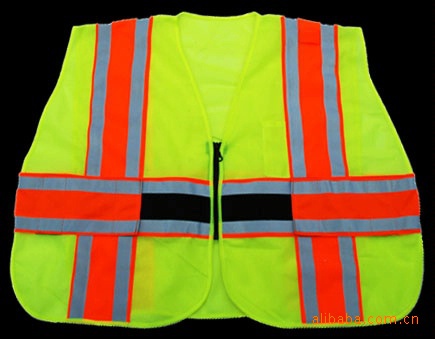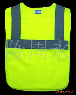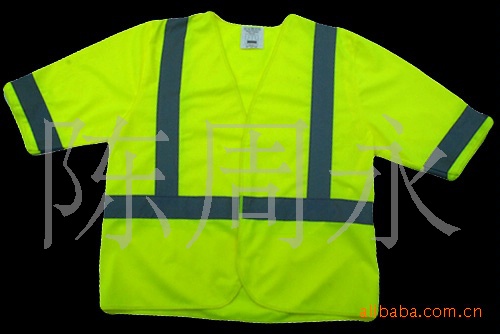 产品介绍;此款背心材料为经遍布,反光材料为高亮反光布,半袖款式,克服了市场中单调的样式,给人以醒目的感览/p>