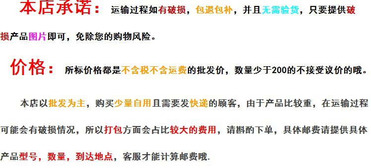 【特别说明【span>:因本店是厂家直销,每天批发量?span>,难免有品种库存量不足情况发生(这样的情况很少)!所以多量的客户请拍前联系店家,确认是否有货;如无货我们安排生产,洽谈交货时闳span>!