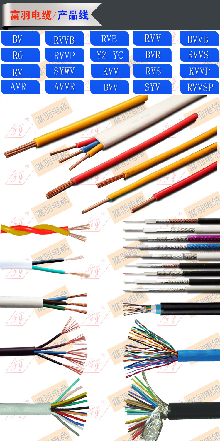 主要产品:avvr、RVV护套线、RVVP屏蔽线、RVS RVVS RVVSP AVR RV BV BVR BVV BVVB RVB红黑?nbsp;RVVB电源线KVV、KVVP控制线,SYV视频线、SYWV射频线、YZYC橡套电缆、金银音响线、电子线、UTP超五类、六类网络线、HYV电话线、HYY、HYA通讯电缆、计算机周边线、各种规格长度连接线、灰彩排线、照明线、电力电缆以及阻?nbsp;耐火 耐寒 防水 环保 特种电线电缆、/span>