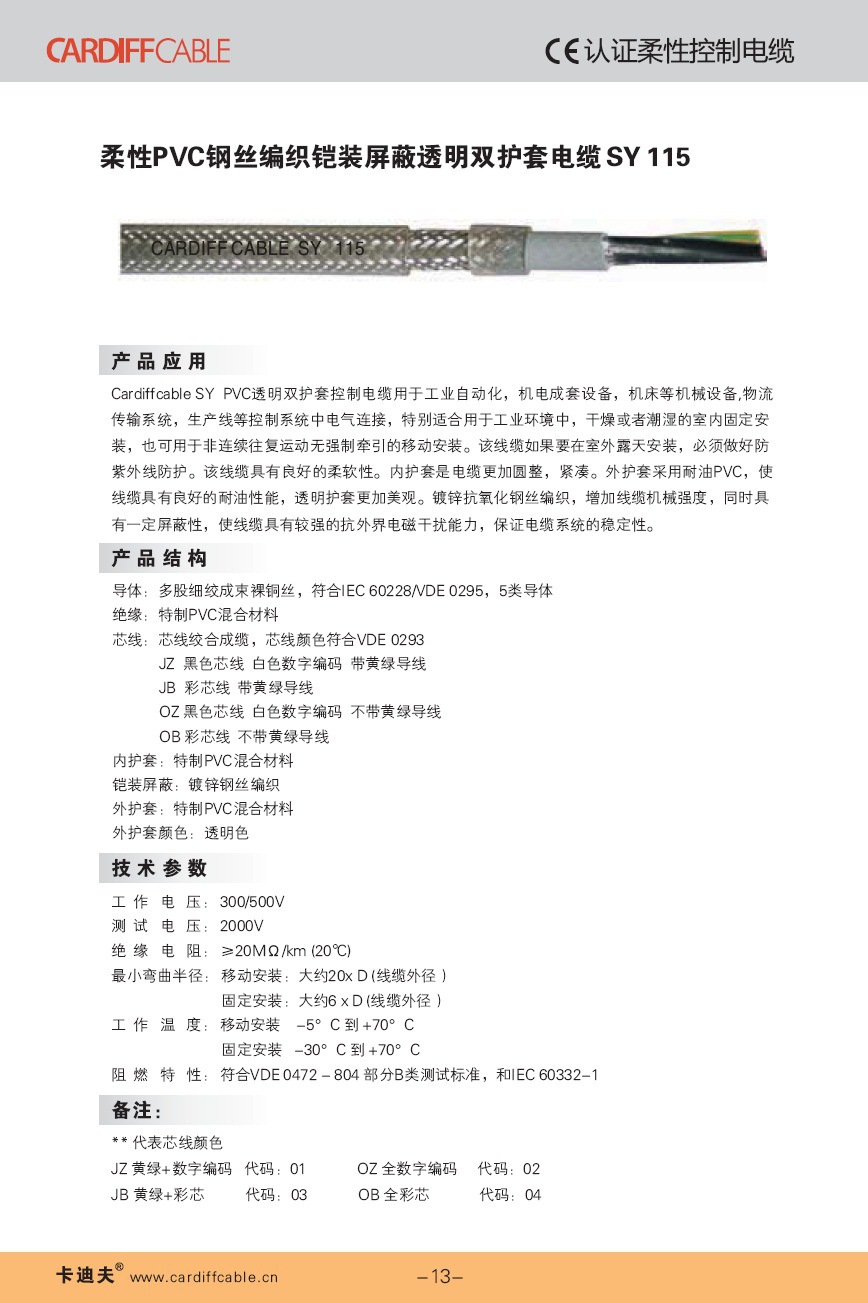 以上是关亍b>卡迪夫CE认证柔性PVC钢丝编织铠装屏蔽透明双护套控制电缅/b>的详细介绍,产品田b>沈一线缆有限公司为您提供,如果您寸b>沈一线缆有限公司产品信息感兴趣可?a class="checkContactWay" href="">联系供应啅/a>,您也可以查看更多相关的产品?/p>