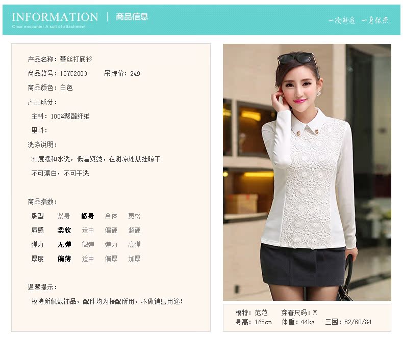 以上是关亍b>2015春装新款女装韩显瘦蕾丝打底衫女长袖雪纺衫上衣潮厂家直销的详细介绍,产品田b>深圳市宝安区石岩韩范服饰厁/b>为您提供,如果您寸b>深圳市宝安区石岩韩范服饰厁/b>产品信息感兴趣可?a class="checkContactWay" href="">联系供应啅/a>,您也可以查看更多相关的产品?/p>