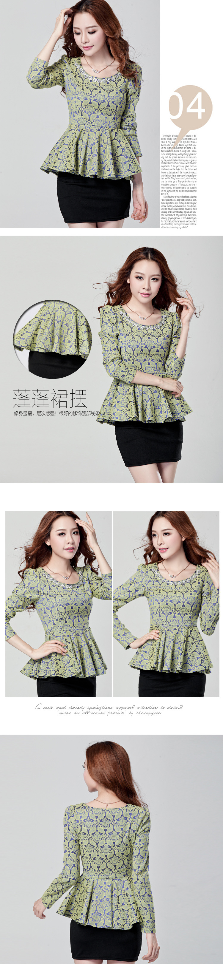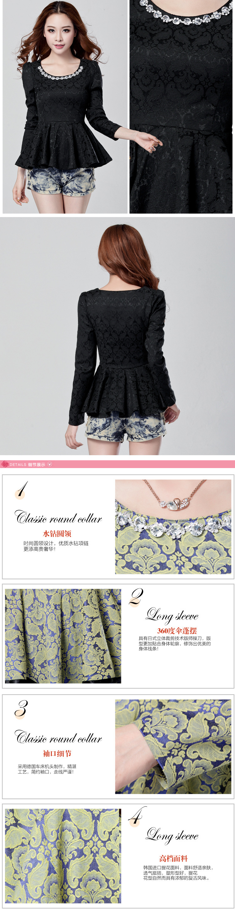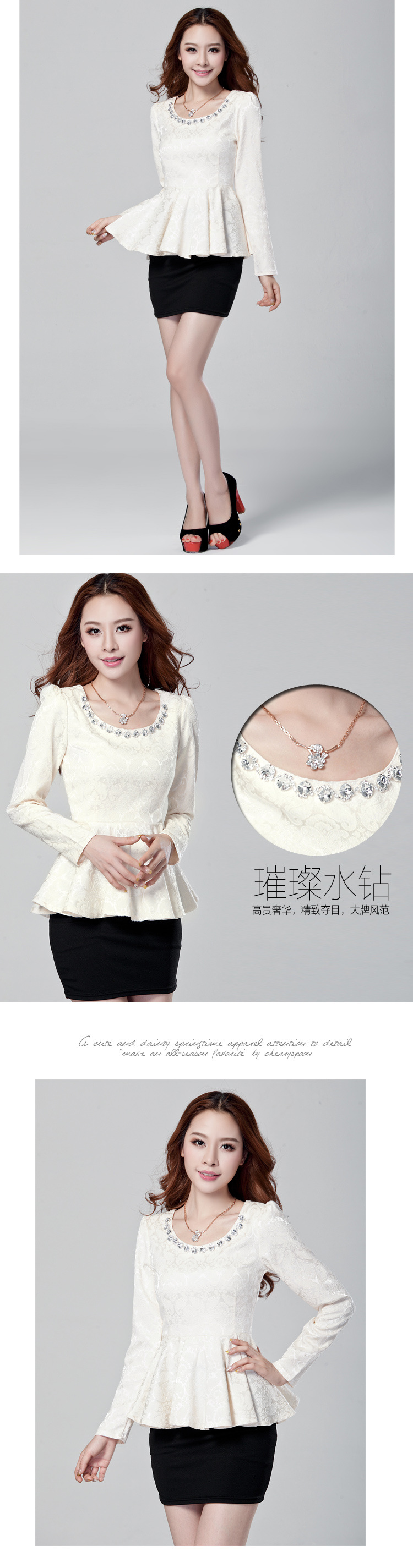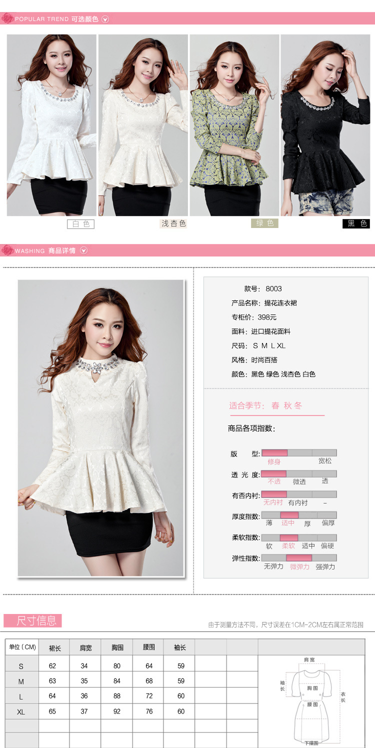 以上是关亍b>2014秋装新款女装上衣韩版品牌秋季长袖水钻提花镂空钩花蕾丝?/b>的详细介绍,产品田b>深圳市光明新区公明金公主制衣厁/b>为您提供,如果您寸b>深圳市光明新区公明金公主制衣厁/b>产品信息感兴趣可?a class="checkContactWay" href="">联系供应啅/a>,您也可以查看更多相关的产品?/p>