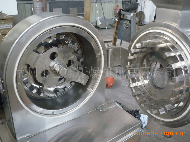 Description:This machine has wide application and is wide used for pharmaceutical industry, chemical industry, pesticide industry foodstuff industry, grain industry, grain industry and so on. This machine uses the relative motion between movable and fixed teeth disc, the raw materials to be crushed undertakes the comprehensive actions such as impacted by teeth, friction, impacted between raw materials, finally the raw materials are crushed. Its features are simple and solid in structure, stable in operation, high crushed efficiency. The crushed raw material can be discharged through the grinding chamber. Moreover, different size of raw material to be crushed can be got through exchanging screen with different mesh. Moreover model 30BV is made from stainless steel. Its inner wall is processed finely, so it is smooth and level. It overcome the shortcoming existed in model 30B III such as roughtness, accumulated powder. It makes the products of medicines, foodstuff and chemicals and so on are in conformity with the requirements of standard and meet the requirements of GMP. Applications: Make the dry or wet granule uniform. Crush the whole conglomeration. Make granule. Crush heat sensitivity raw materials. Technical Parameters: