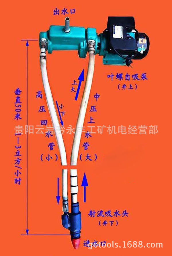 注意:单管进水,吸程15米没有射流双管吸水头、/span>