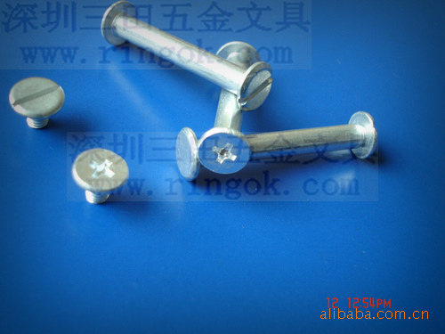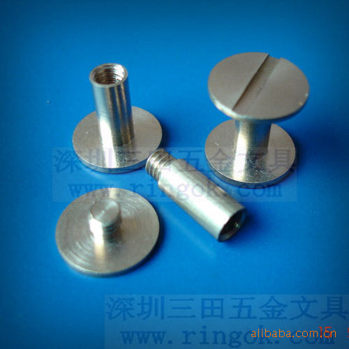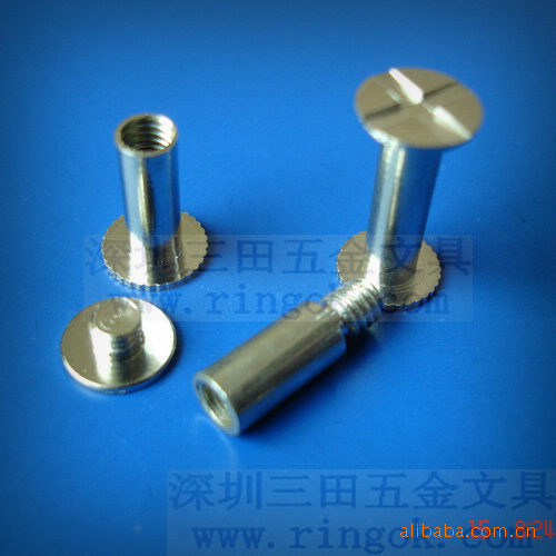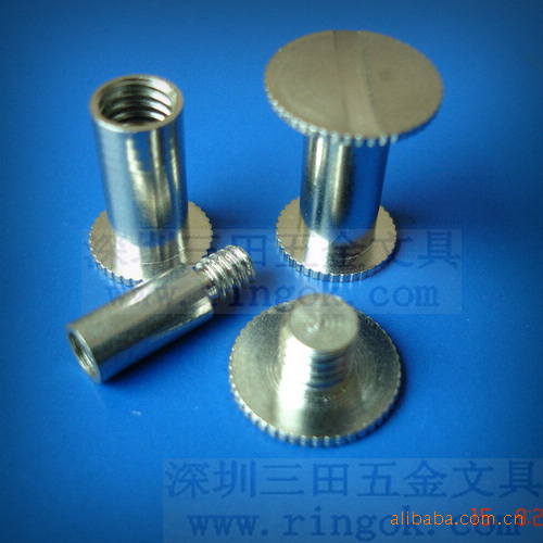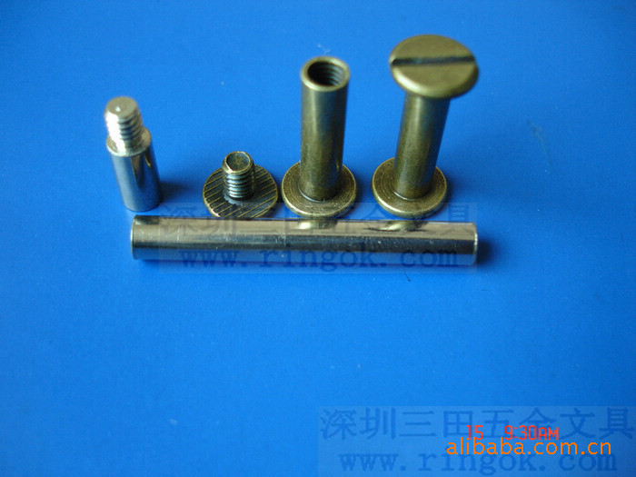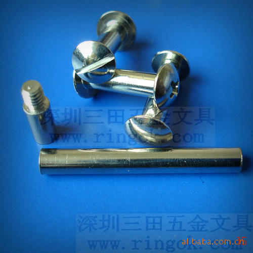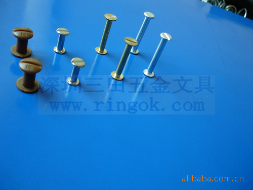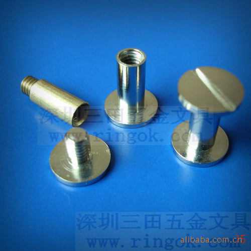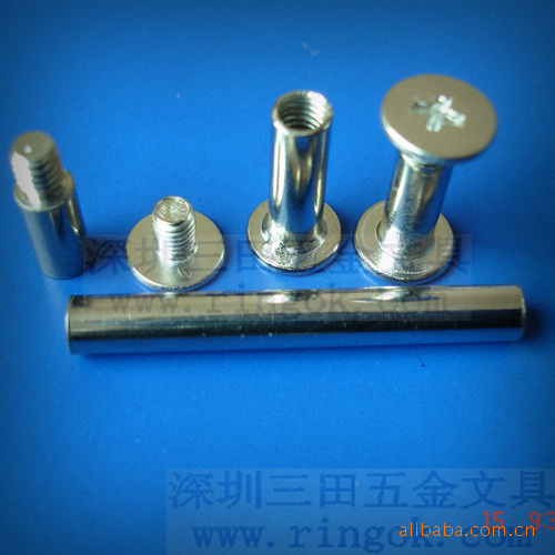帐本钉又称为子母?菜谱?相册?账本?文具?文具?塑料对扣,塑料?塑料?铜钉,铁钉,螺丝?螺丝?文具配件,文具螺丝,可按客户要求生产各种长度,最短为3MM.最?000MM以上,颜色有呖?黑色,本色,金色.表面处理采用环保无毒电镀,符合各国环保标准.