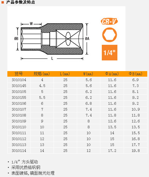 以上是关亍b>厂价直销钢盾/SHEFFIELD6.3mm系列公制6角标准套筒S010114/14mm的详细介绍,产品田b>广州市粤从机械设备有限公号/b>为您提供,如果您寸b>广州市粤从机械设备有限公号/b>产品信息感兴趣可?a class="checkContactWay" href="">联系供应啅/a>,您也可以查看更多相关的产品?/p>