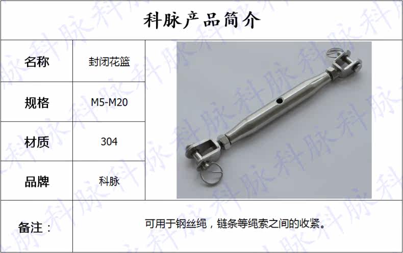 以上是关亍b>不锈钢封闭花篮闭体花篮螺丝链条收紧器钢丝绳拉紧器M20的详细介绍,产品田b>兴化市科脉不锈钢制品厁/b>为您提供,如果您寸b>兴化市科脉不锈钢制品厁/b>产品信息感兴趣可?a class="checkContactWay" href="">联系供应啅/a>,您也可以查看更多相关的产品?/p>