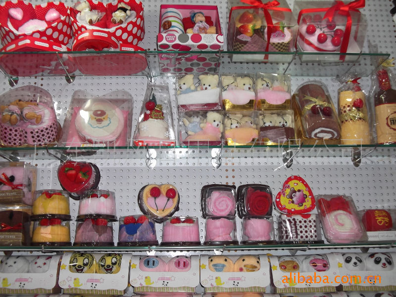 再添加仿真包装模仿西式蛋糕点心造型和卡通动物造型创意处理出来的仿真毛巾礼品、/span>