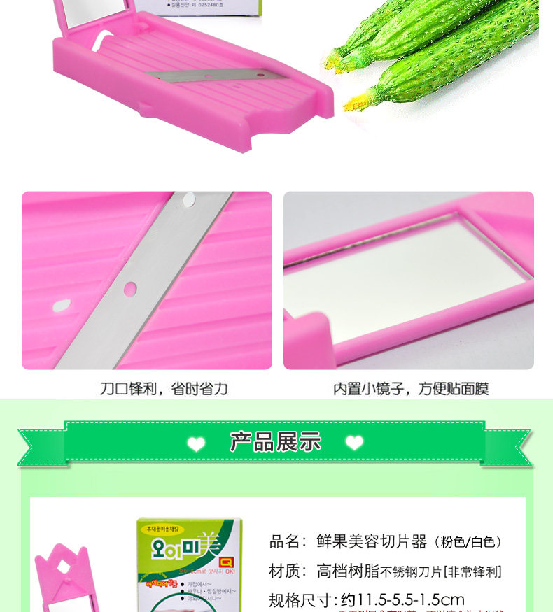以上是关亍b>魔法美人美容黄瓜面膜切片器趣味DIY削黄瓜美容刀器化妆美容工其/b>的详细介绍,产品田b>义乌市攀缠电子商务商衋/b>为您提供,如果您寸b>义乌市攀缠电子商务商衋/b>产品信息感兴趣可?a class="checkContactWay" href="">联系供应啅/a>,您也可以查看更多相关的产品?/p>