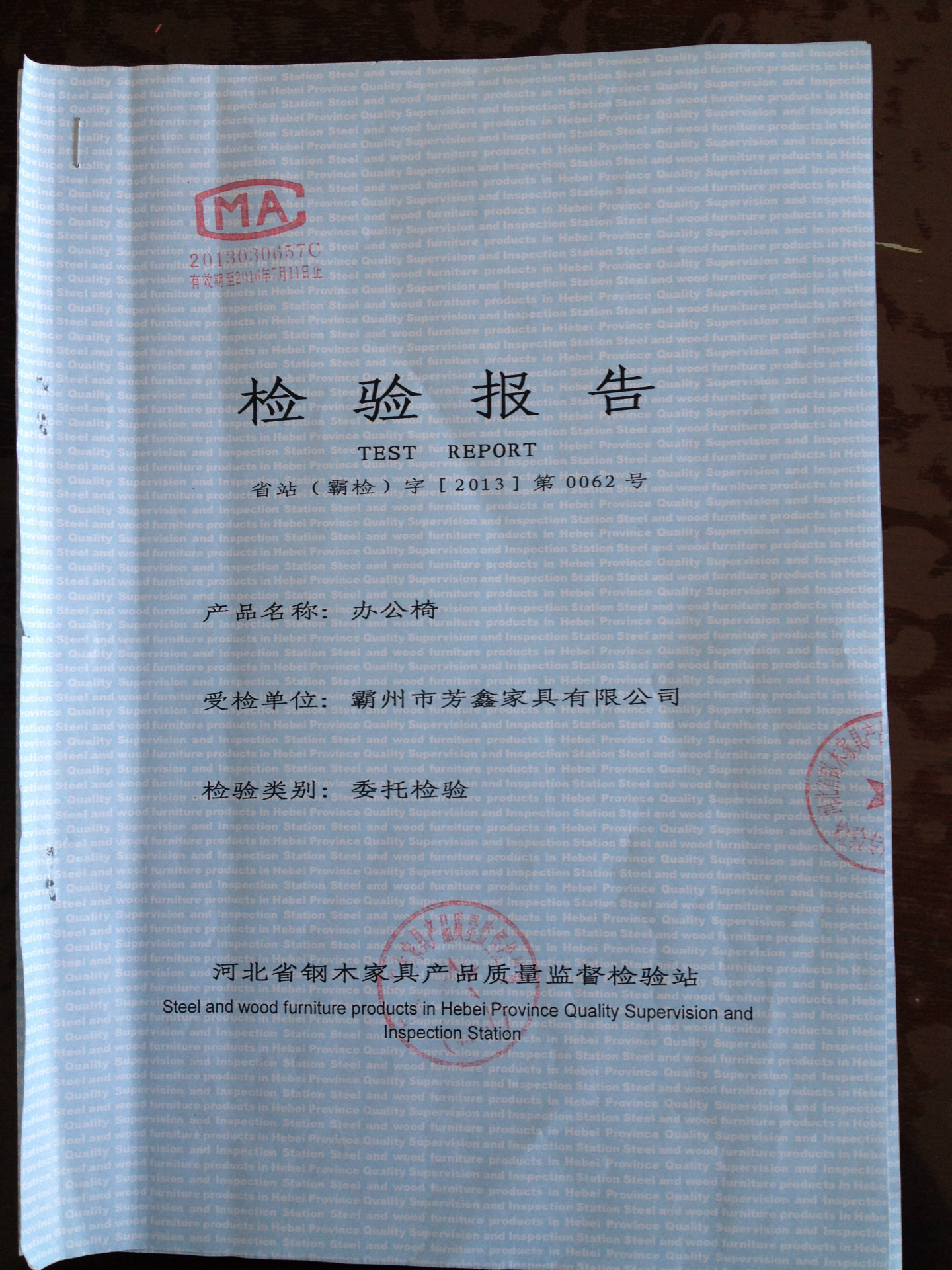 本公司主打两个品牌《芳鑫》《菲德隆》,产品均按照外贸质量生产,以下为质检报告