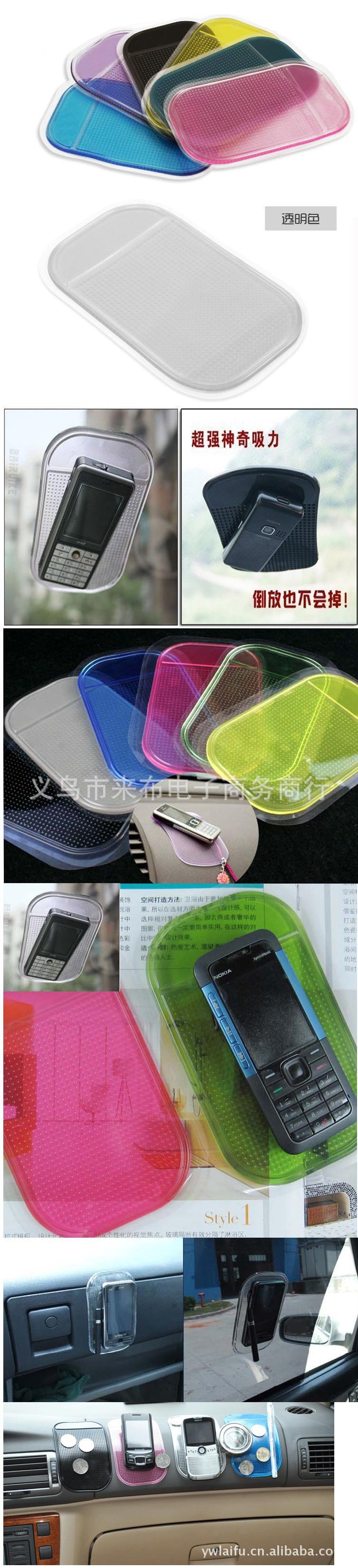 本产品为航空型高聚合弹性材料制作,耐高温,不变形,并可在零下的温度中使用,具自然香味,无毒性,有惊人的吸附力、br />可贴于汽车任何平面位置上,可粘住并保护手机,眼镜,烟盒,名片,纸张等移动物件,并且不会被贴面造成任何损害、br />本产品为环保材料制作,与土壤接触会自然分解,不会造成污染、br />当防划垫因俯有灰尘粘性减弱时,只须用清水清洗,晾干后即可恢复粘性、/strong>