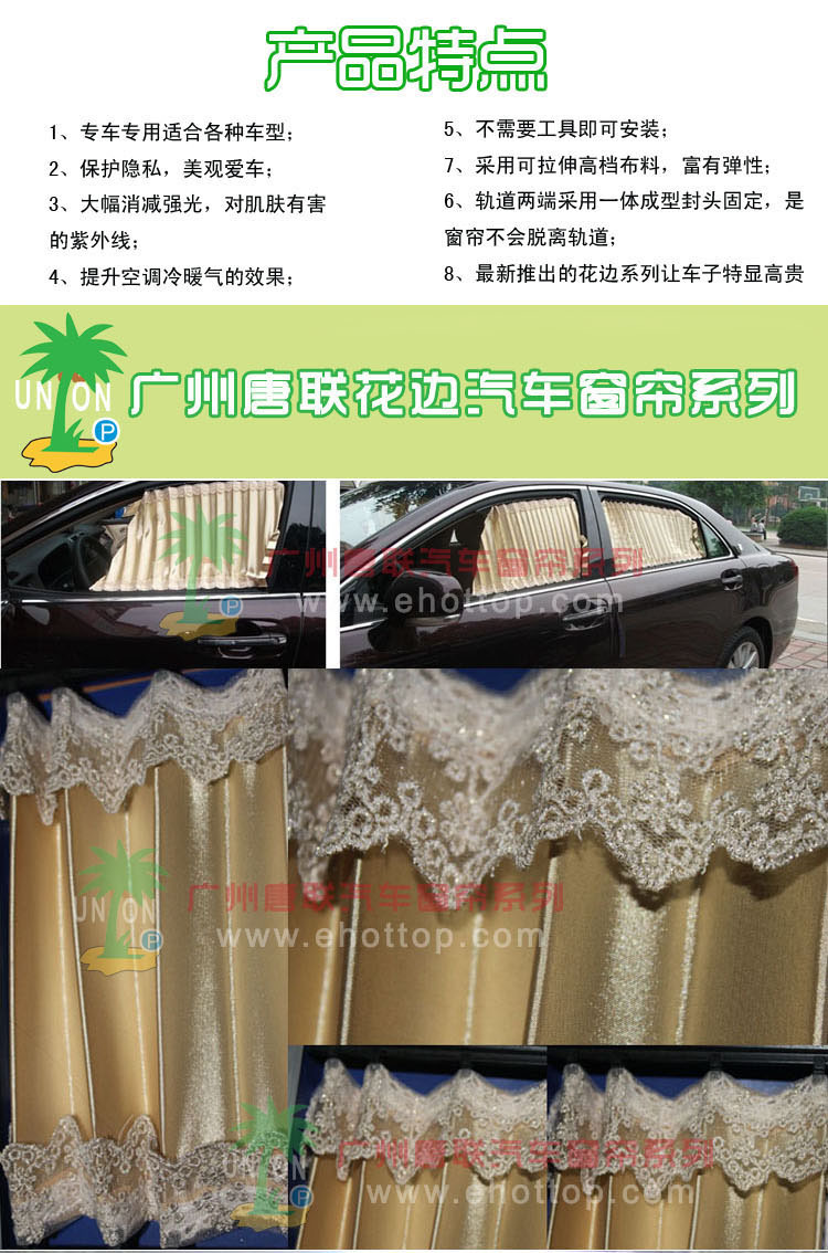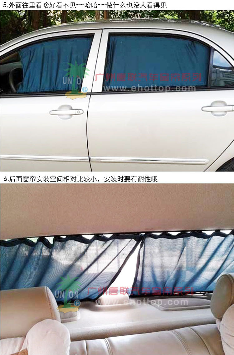 太阳无时无刻毒害着车内皮质和内饰,更伤害着我们的皮肤,一幅好窗帘可以发挥其遮阳、防紫外线并与窗外隔开视线的作用,既是比较理想的一种防晒装置,更可为您营造一个良好的私密空间、/font>
