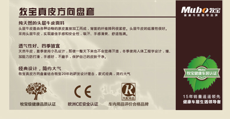 以上是关亍b>Mubo牧宝头层牛皮方向盘套高档真皮把套WZ15HZ(M)方向盘套的详细介绍,产品田b>贵阳群普车饰服务有限公司为您提供,如果您寸b>贵阳群普车饰服务有限公司产品信息感兴趣可?a class="checkContactWay" href="">联系供应啅/a>,您也可以查看更多相关的产品?/p>