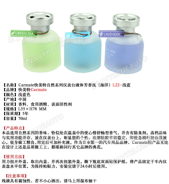 【注:为满足小批量批发商的采购需求,本店所有产品均可参与混批!】更多新颖产品敬请返回首页查看,或直接旺旺QQ?71361114)联系,谢谢?/span>【名称】快美特自然系列仪表台香氳br>【材料】香料、食用酒精、表面活性剂