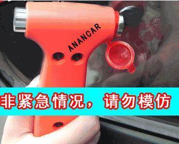 若遇事故,无法打开车门和车窗时,可用榔头打碎玻璃逃生