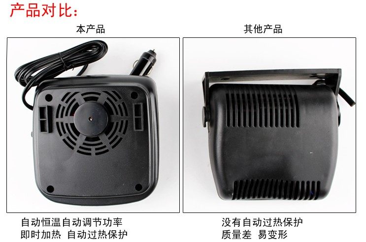 通过风机的旋转,强制空气循环,有利于空气的加热,高速旋转风机,铝片合金陶瓷加热器可以迅速取?自驾游出行、野营露营,玻璃除霜除雾的必备产?产品安装简单,接上电源+span>打开开关马上出热风就可以正常使用、节能损耗少、噪音低,无明火,不损电瓶,不烧点烟器保险丝。安全可靠 本款产品市场上有以次充好,以假乱真的低档劣质便宜货。请买家谨慎、/span>