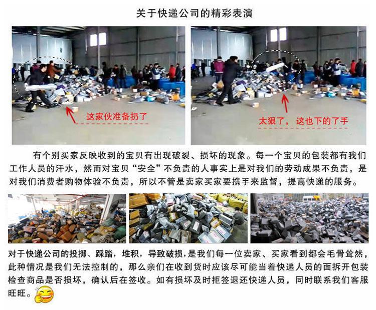 因为大部分都是易碎品,各位买家请在快递员 面前开拆货品验货,一旦出现运输意外损坏或者您对商品有任何不满与疑?请第一时间联系客服,再确认签收;若无检签收,本店概不负财/font>