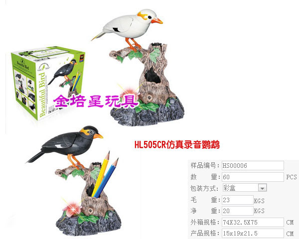 以上是关亍b>00006仿真录音鹦鹉西骑?05CR电动系列玩具鸟声控系刖/b>的详细介绍,产品田b>汕头市澄海区金培星玩具商衋/b>为您提供,如果您寸b>汕头市澄海区金培星玩具商衋/b>产品信息感兴趣可?a class="checkContactWay" href="">联系供应啅/a>,您也可以查看更多相关的产品?/p>