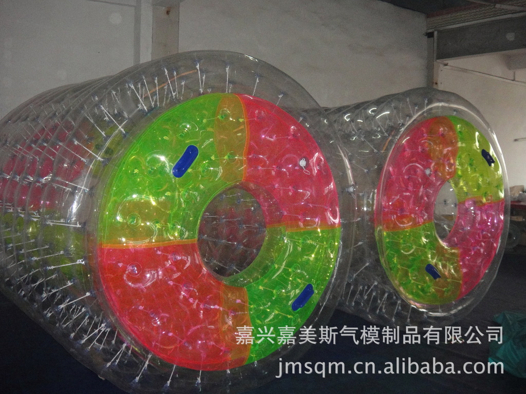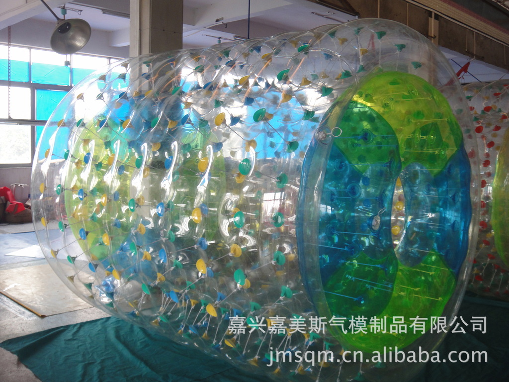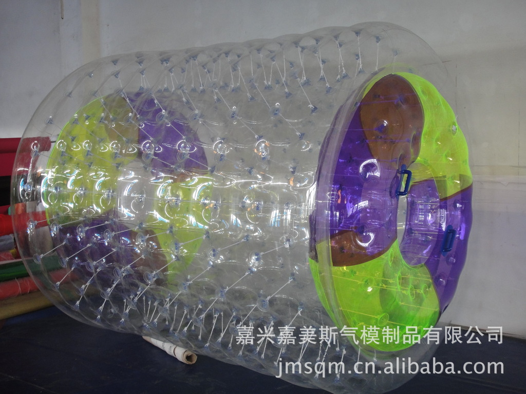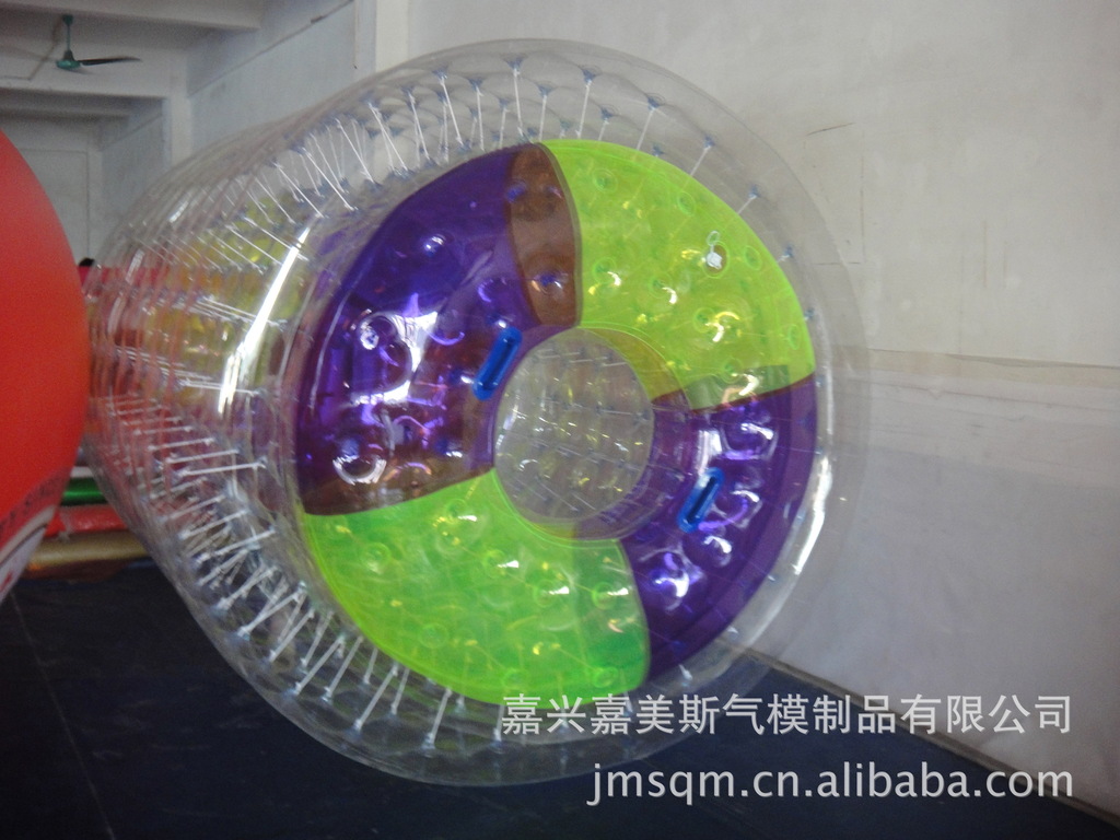 水上滚筒(又名:水上风火轮)是我公司研制的最新产品,它必将是继水上步行球之后又一水上火爆产品。它材料采用高透明度、高弹性的进口聚氯乙烯材料,厚度为0.8mm, 滚筒长度2.6?内径1.9?外径2.4? 重量50KG,可载重量180KG,不易侧翻非常安全。多个充气气囊充一次性充气后,游客从 端进入便可水上行走、水中漫步。它集新颖、趣味、安全、刺激、健身于一?时尚、休闲、健身、蕴含商机)、/span>