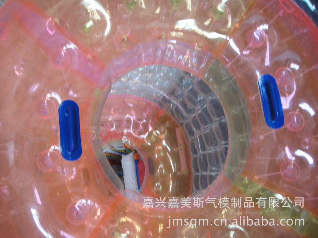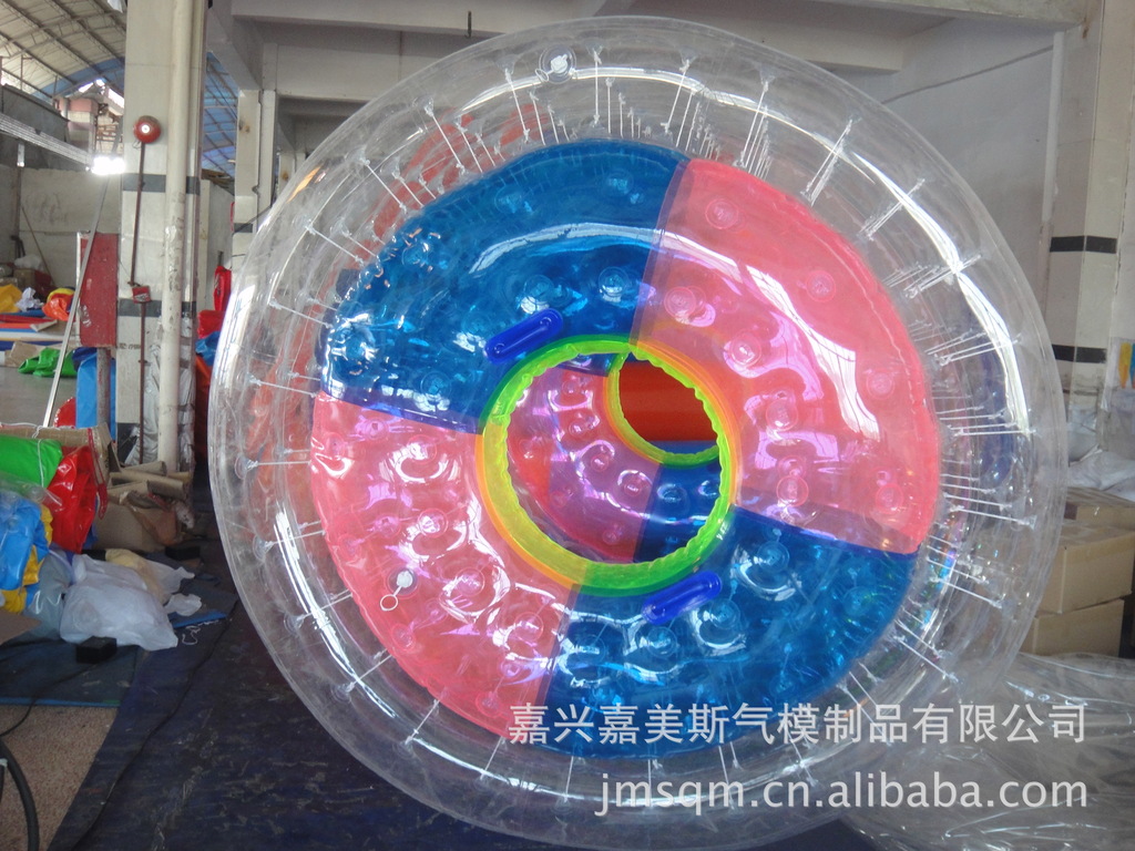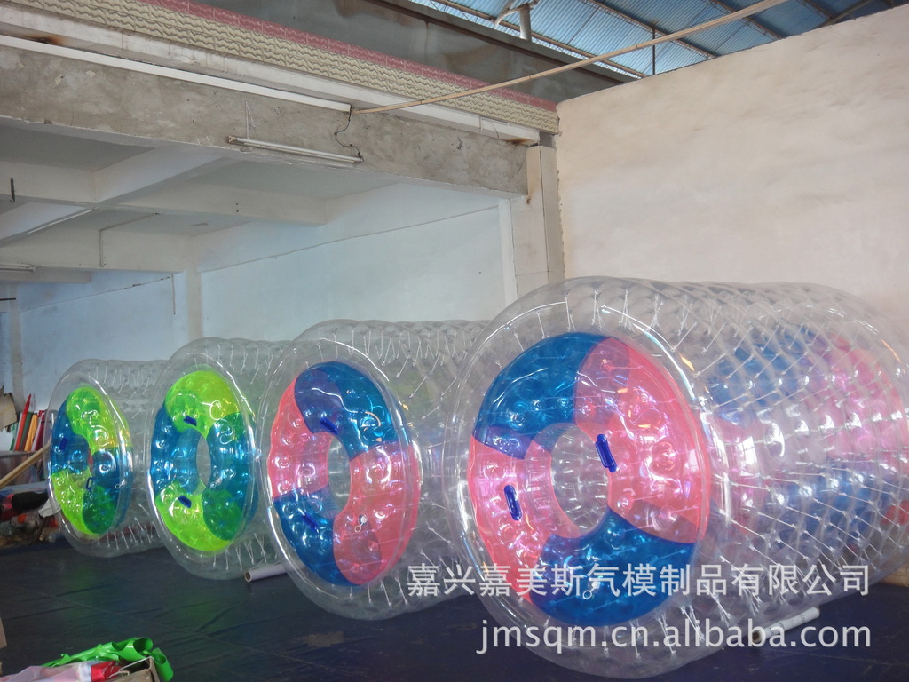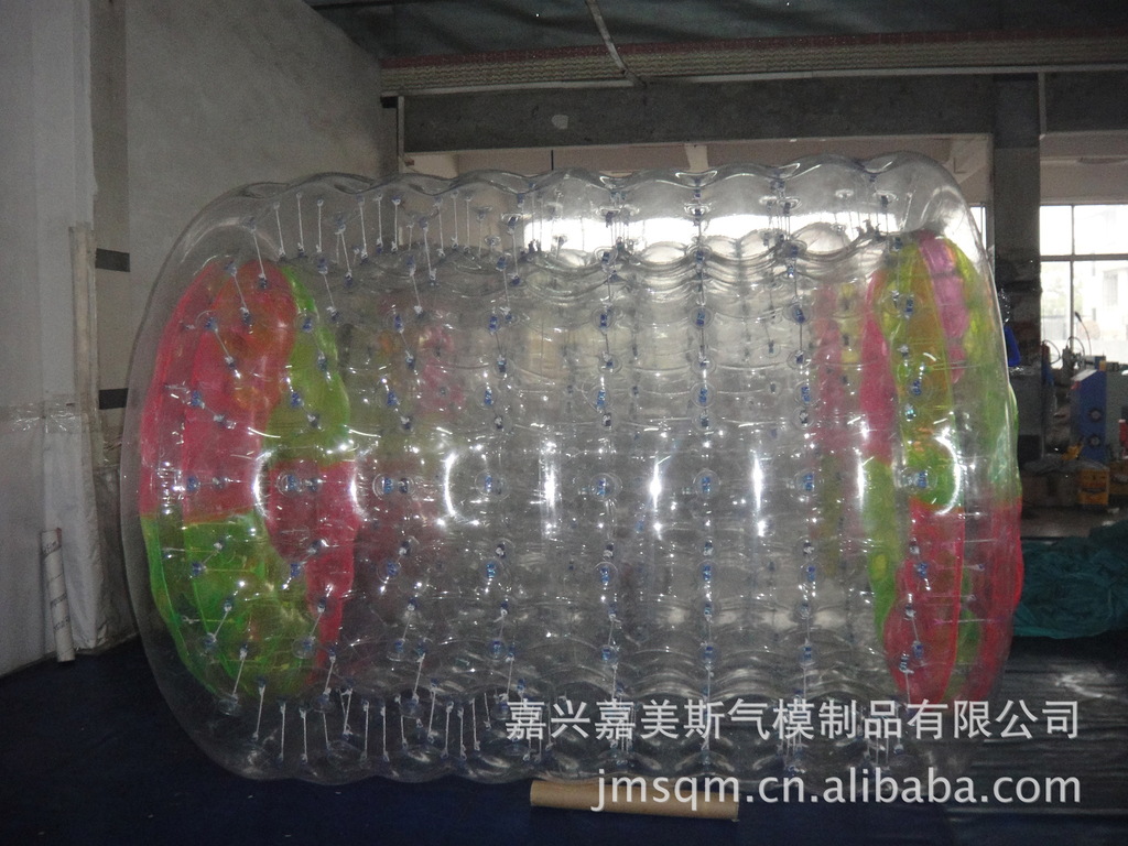 水上滚筒(又名:水上风火轮)是我公司研制的最新产品,它必将是继水上步行球之后又一水上火爆产品。它材料采用高透明度、高弹性的进口聚氯乙烯材料,厚度为0.8mm, 滚筒长度2.6?内径1.9?外径2.4? 重量50KG,可载重量180KG,不易侧翻非常安全。多个充气气囊充一次性充气后,游客从 端进入便可水上行走、水中漫步。它集新颖、趣味、安全、刺激、健身于一?时尚、休闲、健身、蕴含商机)、/span>