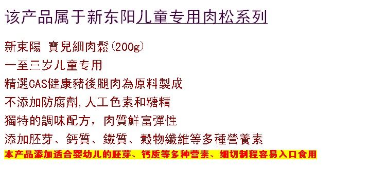 【品 名】新东阳宝儿细肉松(一至三岁儿童专用)